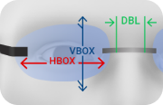 A distância ao vértice é a distância entre o ápice corneano e a face posterior da lente. lentes Hazen Individual leva em consideração o ângulo pantoscópico, ângulo facial e distância ao vértice para simular a posição real da lente com respeito ao olho.