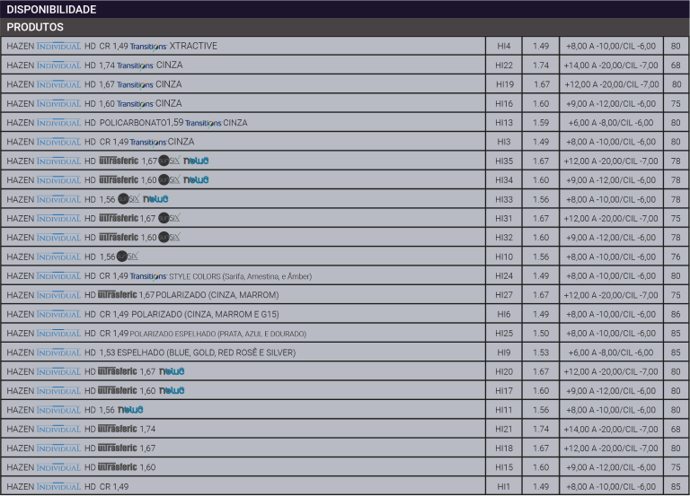 As lentes multifocais HAZEN INDIVIDUAL HD são calculadas com a mais inovadora tecnologia Freeform Customizada, que reúne a complexidade das curvas internas e externas, dados da armação e os dados individuais dos usuários. Essa combinação permite oferecer aos usuários a maior amplitude dos campos de visão, suavizando suas periferias e resultando na melhor e mais rápida adaptação.