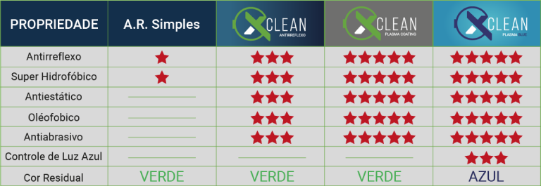 O Tratamento antirreflexo XClean, é uma categoria de antirreflexo que além de reduzir os reflexos indesejados, se preocupa com a qualidade. Conta com as propriedades que facilitam o manuseio e ajudam na durabilidade.